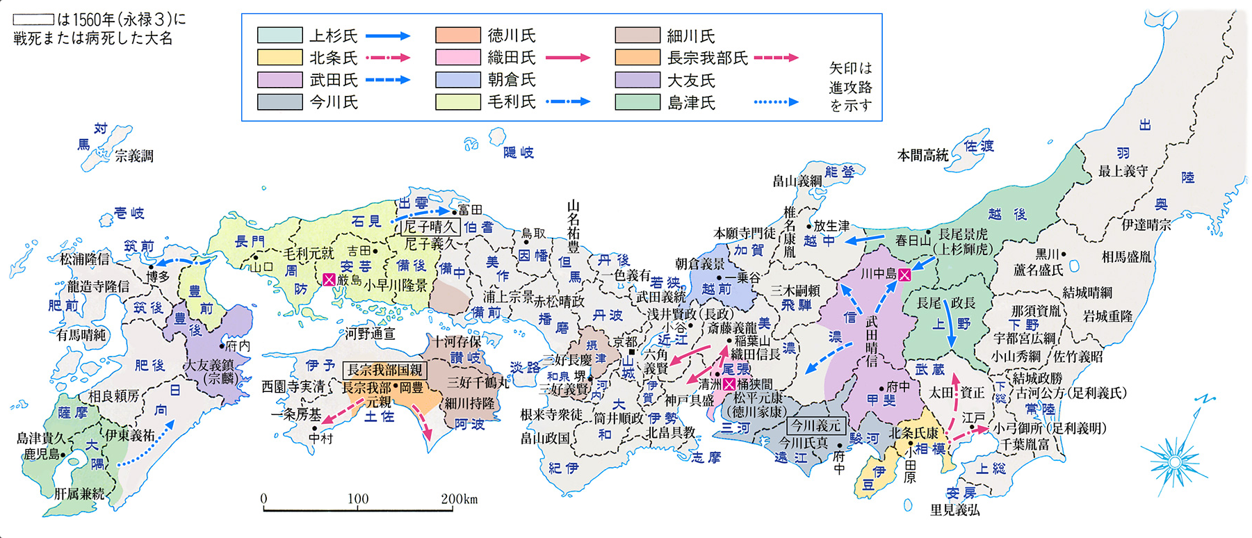 군웅할거(群雄割據) 패권경쟁에서 다이묘(大名) 오다 노부나가(織田信長)가 통일의 터를 잡고, 도요토미 히데요시(豐臣秀吉)가 전국을 평정하고 통일을 이룸으로써 아즈치모모야마 시대(安土桃山時代 1573년~1603년까지 30년간 존속) 또는 쇼쿠호 시대(織豊時代)를 여는 1573년은 동시에 무로마치 막부(室町幕府) 즉, 무로마치 시대(室町時代)의 센고쿠 시대(戦国時代 전국시대 AD 1467년~AD 1573년까지 106년간 존속)가 종말을 고하는 해였다.