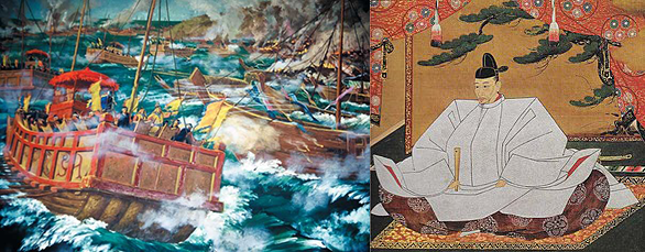 - 일본 첫 막부(幕府)정치의 시작인 가마쿠라 막부(鎌倉幕府 겸창막부)에 의한 실질적인 통치가 시작되었던 AD 1185년~1333년까지의 가마쿠라 시대(鎌倉時代)이던 1318년 다이카쿠지 계통의 고다이고 천황(後醍醐天皇 후제호천황|일본 제96대 천황·후일 남조 초대 전황)이 즉위한 후 막부와 대립하였고, AD 1331년 가마쿠라 막부를 타도하기 위해 겐코의 변(元弘の変)을 일으켰으나 측근 요시다 사다후사(吉田定房)의 밀고로 발각되면서 교토(京都)의 가사기데라(笠置寺)로 탈출하였다. 이에 가마쿠라 막부는 그를 폐위시키고 지묘인 왕통(持明院統 じみょういんとう)인 가즈히토친왕(量仁親王)을 고곤 천황(光厳天皇 본명: 카즈히토 量仁량인·북조 초대 천황 * 북조의 수도는 교토 京都)으로 즉위시켰다.